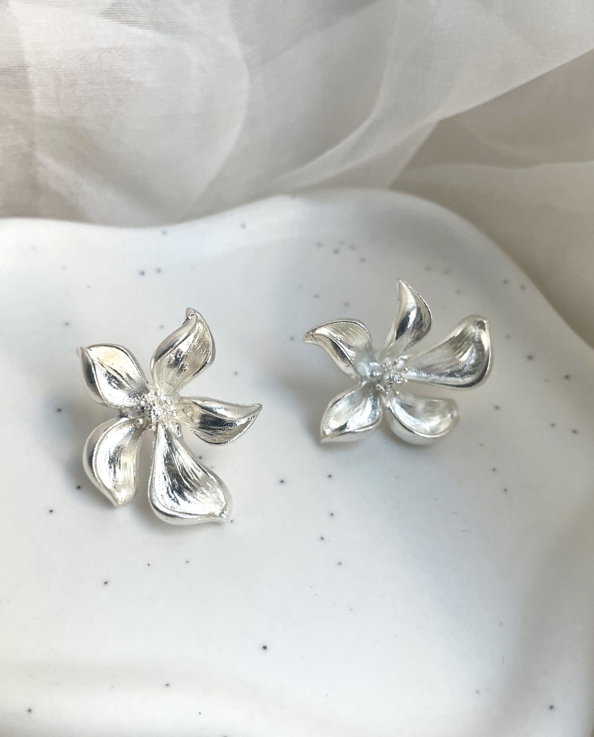 Preciosos pendientes en forma de flor, bañados en oro de 18kl.