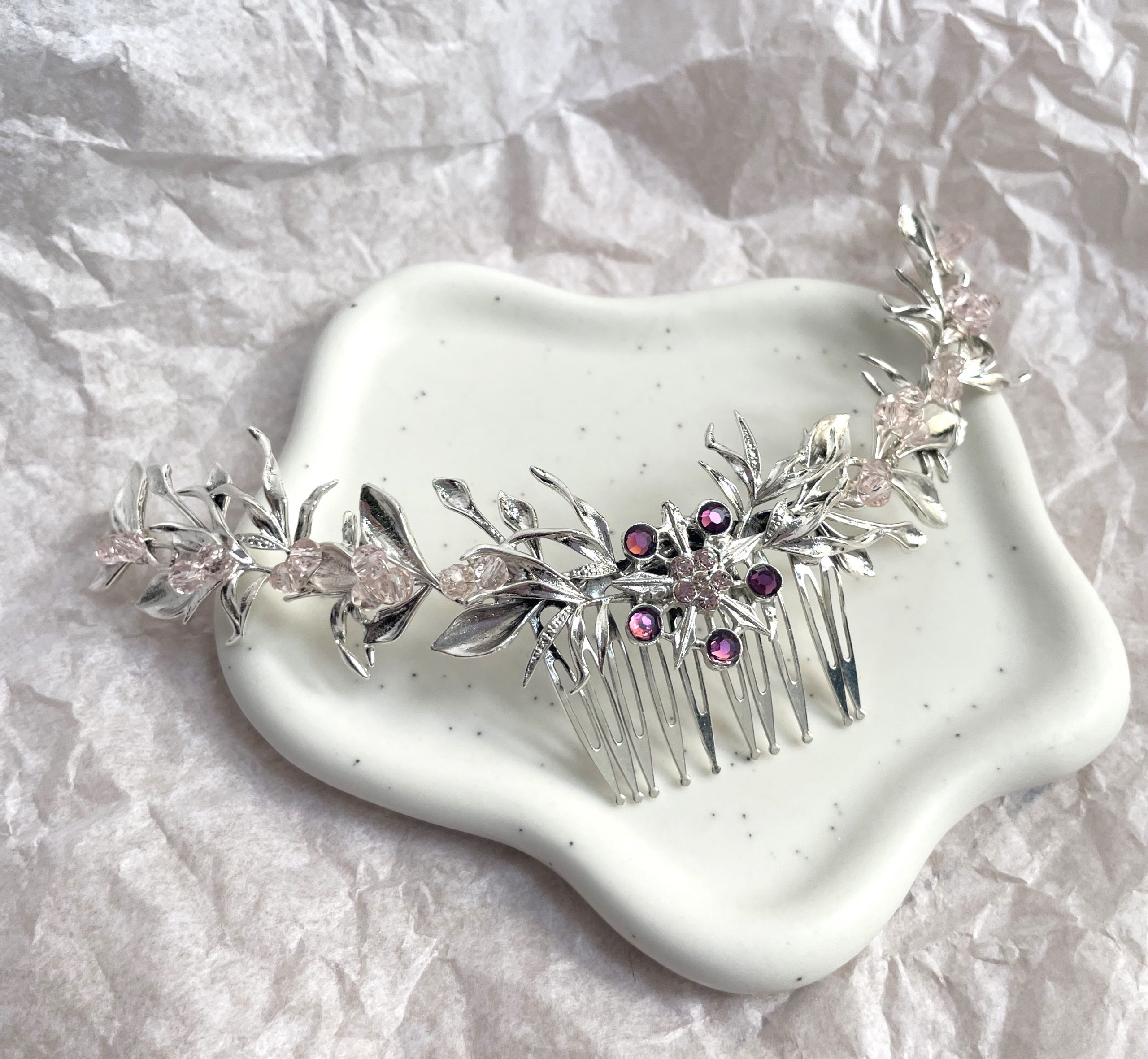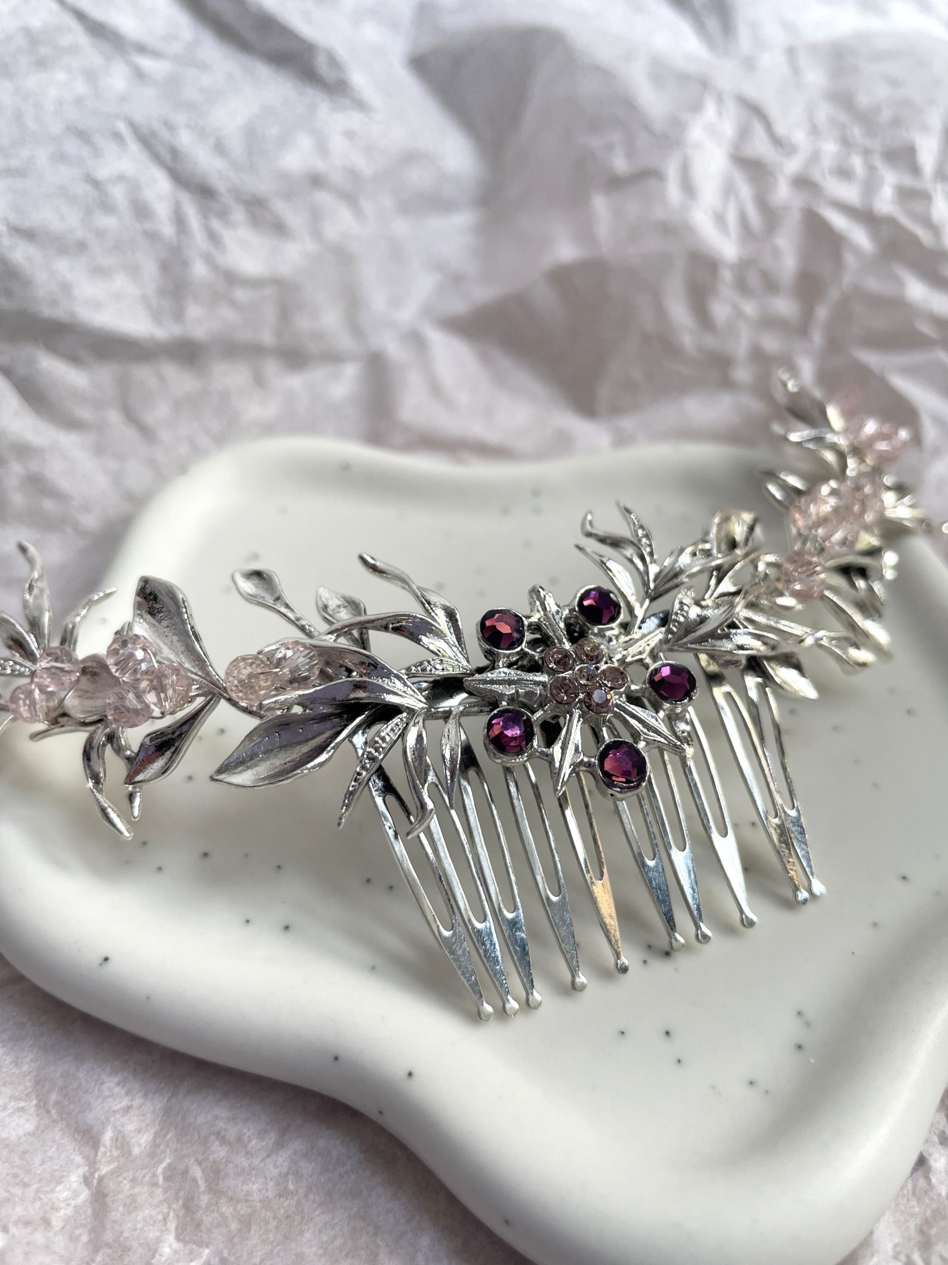 Preciosa peina realizada en latón puro bañada en plata de ley.