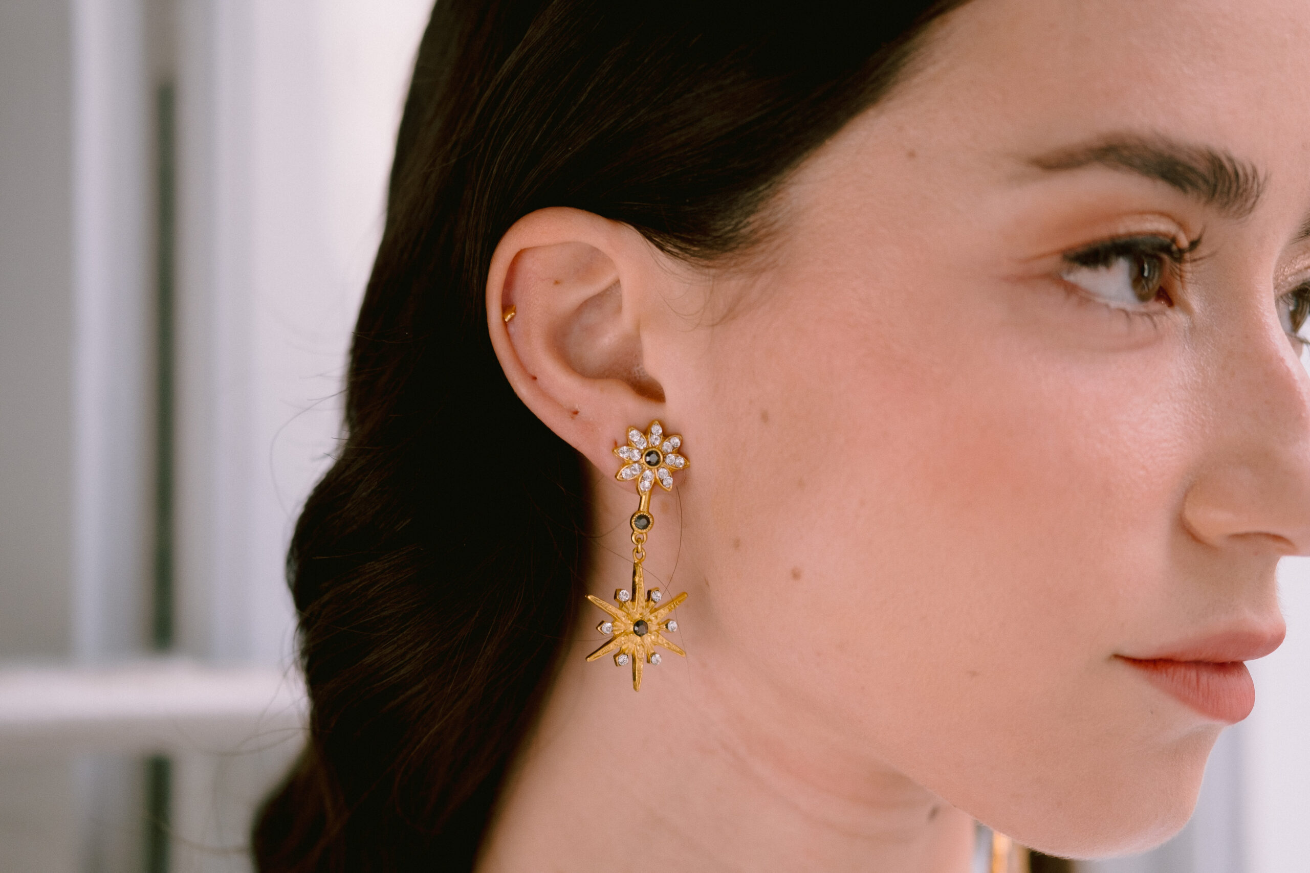 La estrella mediana es de quita y pon, puedes tener dos pendientes en uno.